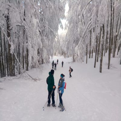 Dopo colazione appuntamento dotati di attrezzatura (ciaspole e bastoncini) e partenza per la prima ciaspolata nei boschi di castagni e faggi che ricoprono i versanti nord-ovest del vulcano.